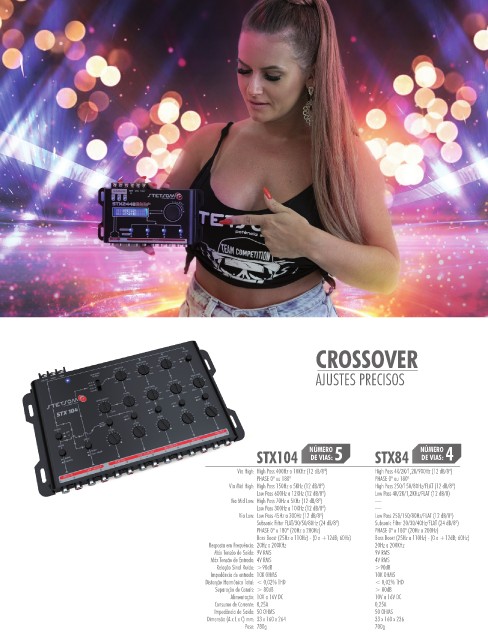 Via Mid High: High Pass 150Hz a 5KHz (12 dB/8ª) High Pass 250/150/80Hz/FLAT (12 dB/8ª)