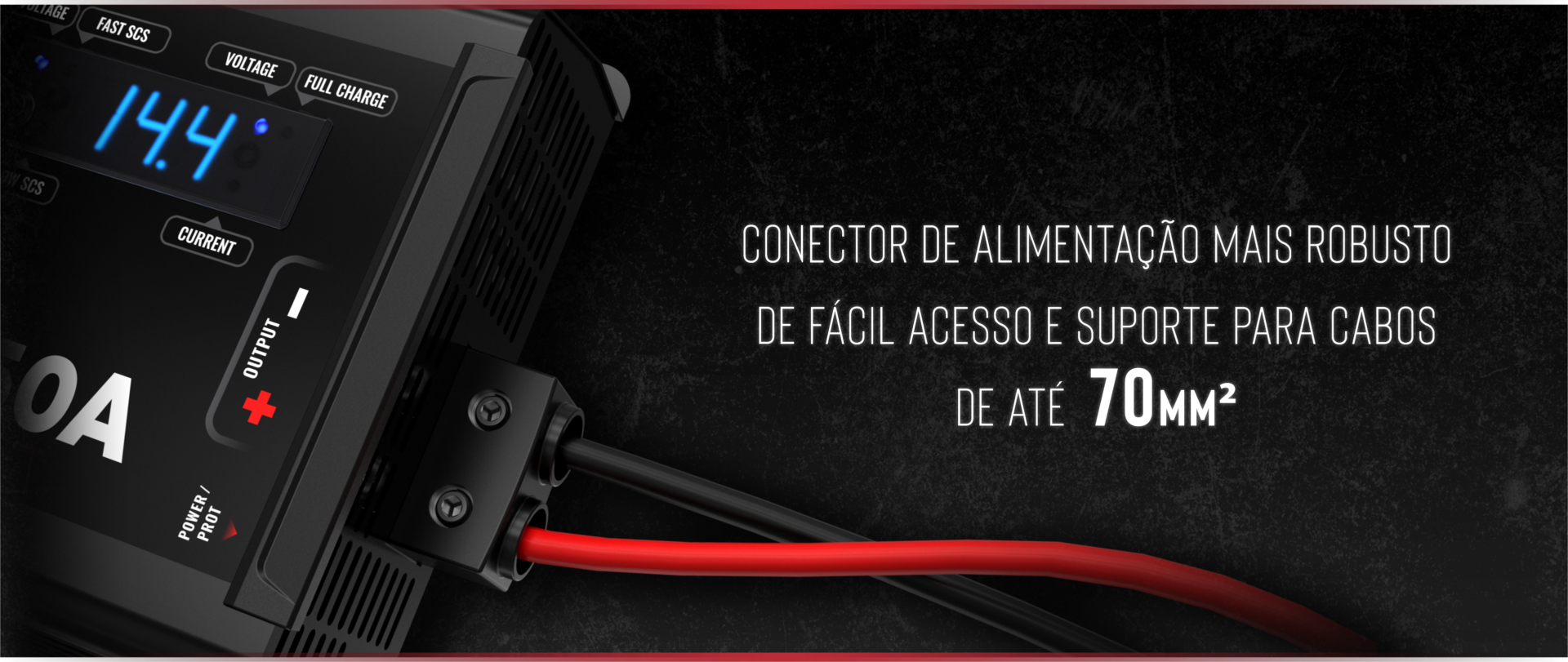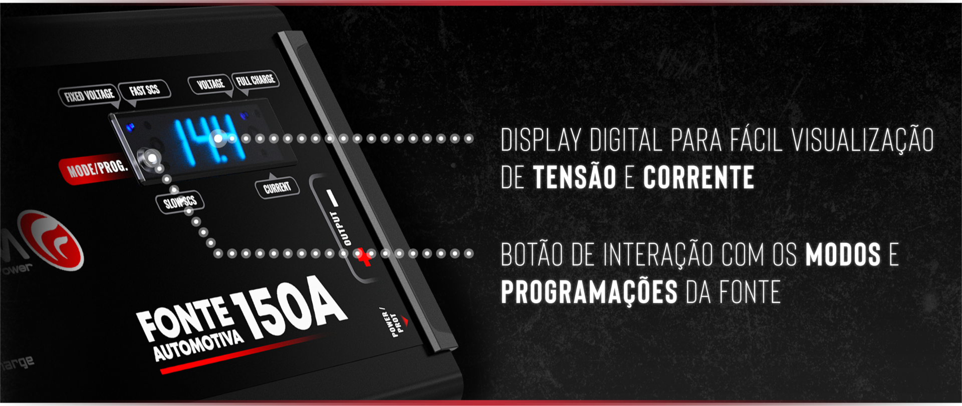 A nova linha de FONTES AUTOMOTIVA foi desenvolvida para oferecer o máximo em eficiência energética em carregamento de baterias e alimentação de equipamentos automotivos, utilizando o melhor da tecnologia atual. Seu sistema inteligente de carregamento previne o desgaste prematuro das baterias, aumentando sua vida útil e alimentando equipamentos de forma contínua, evitando que as baterias descarreguem durante seu uso.