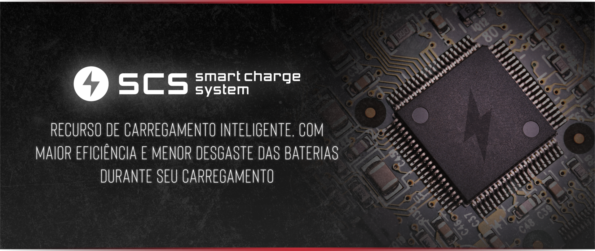 Monitora e regula de forma inteligente o ciclo de carga das baterias, fornecendo maior eficiência e segurança.