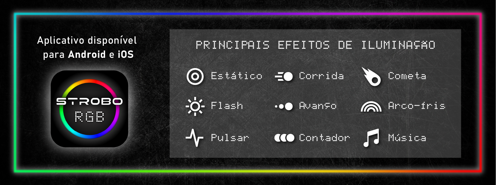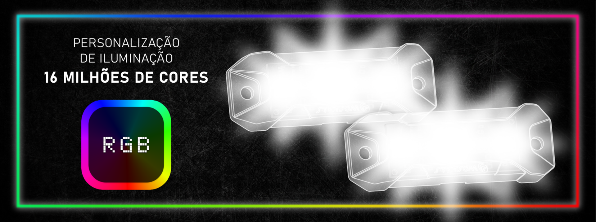 – Modos de iluminação personalizado, com possibilidade de configurar diversos efeitos em sequência.